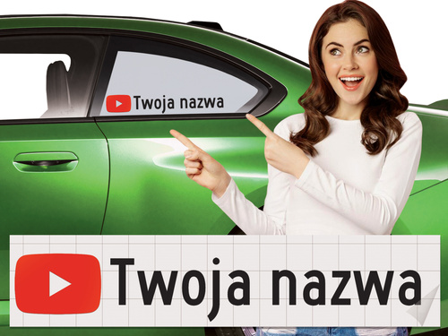 Naklejka z logiem YOU TUBE i Twoją nazwą social mediów - czarny odblask