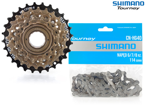 ( ilość produktów: 5 )Zestaw Shimano Tourney - wolnobieg MF-TZ500 - 6 rz. 14-28 + łańcuch Shimano HG40