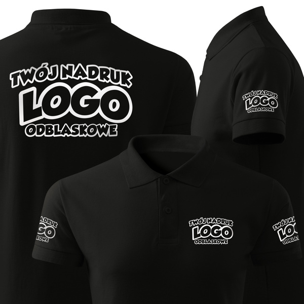 - Męska koszulka polo z indywidualnym nadrukiem umieszczonym na piersi, plecach i obu rękawkach. Doskonale sprawdzi się jak i jako element odzieży firmowej, reklamowej lub jako personalizowany prezent dla bliskiej osoby.