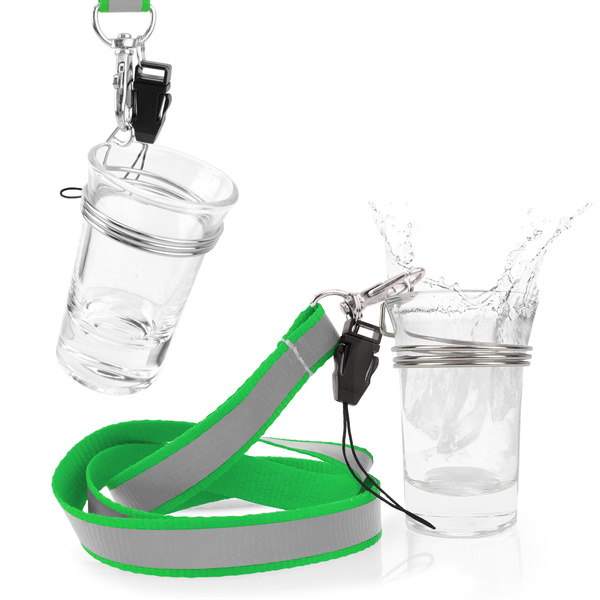 smycz odblaskowa ZIELONA i kieliszek szklany